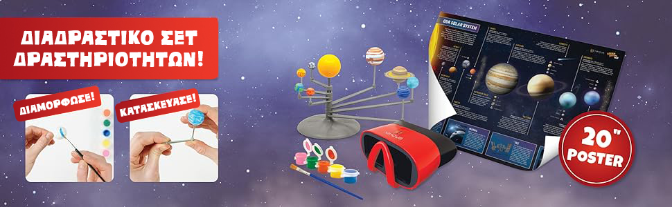 Εξερευνήστε το ηλιακό μας σύστημα σε εκπληκτική εικονική πραγματικότητα! Το σετ Solar System VR περιλαμβάνει υλικά για την κατασκευή του δικού σας πλανηταρίου (βάση πλανητών, πλανήτες και χρώματα).