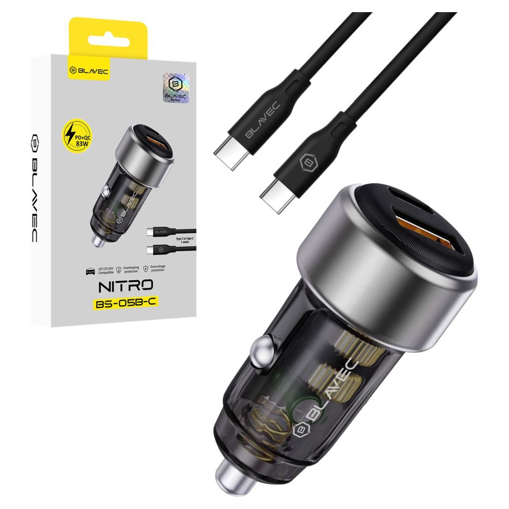 Blavec BS-05B-C Nitro Car Charger Type-C / USB QC 3.0 18W PD 65W with Type C to Type C Cable (CCBS05BCN-UCB) Φορτιστής Αυτοκινήτου - Black - MT82808