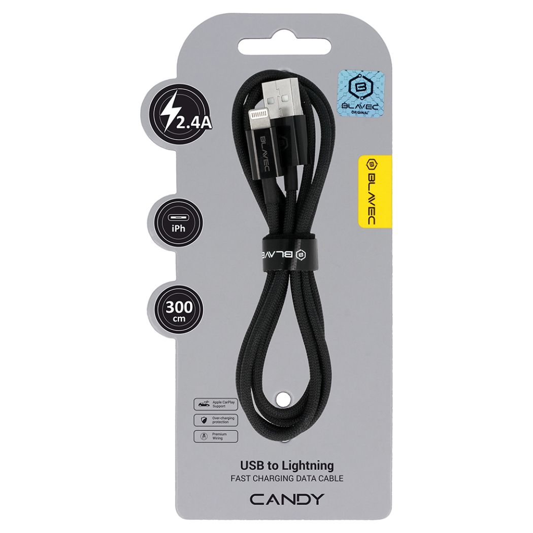 Blavec Candy Braided Fast Charging Data Cable 2,4A (CCA-UL24B30) Καλώδιο Φόρτισης USB to Lightning 3m Black