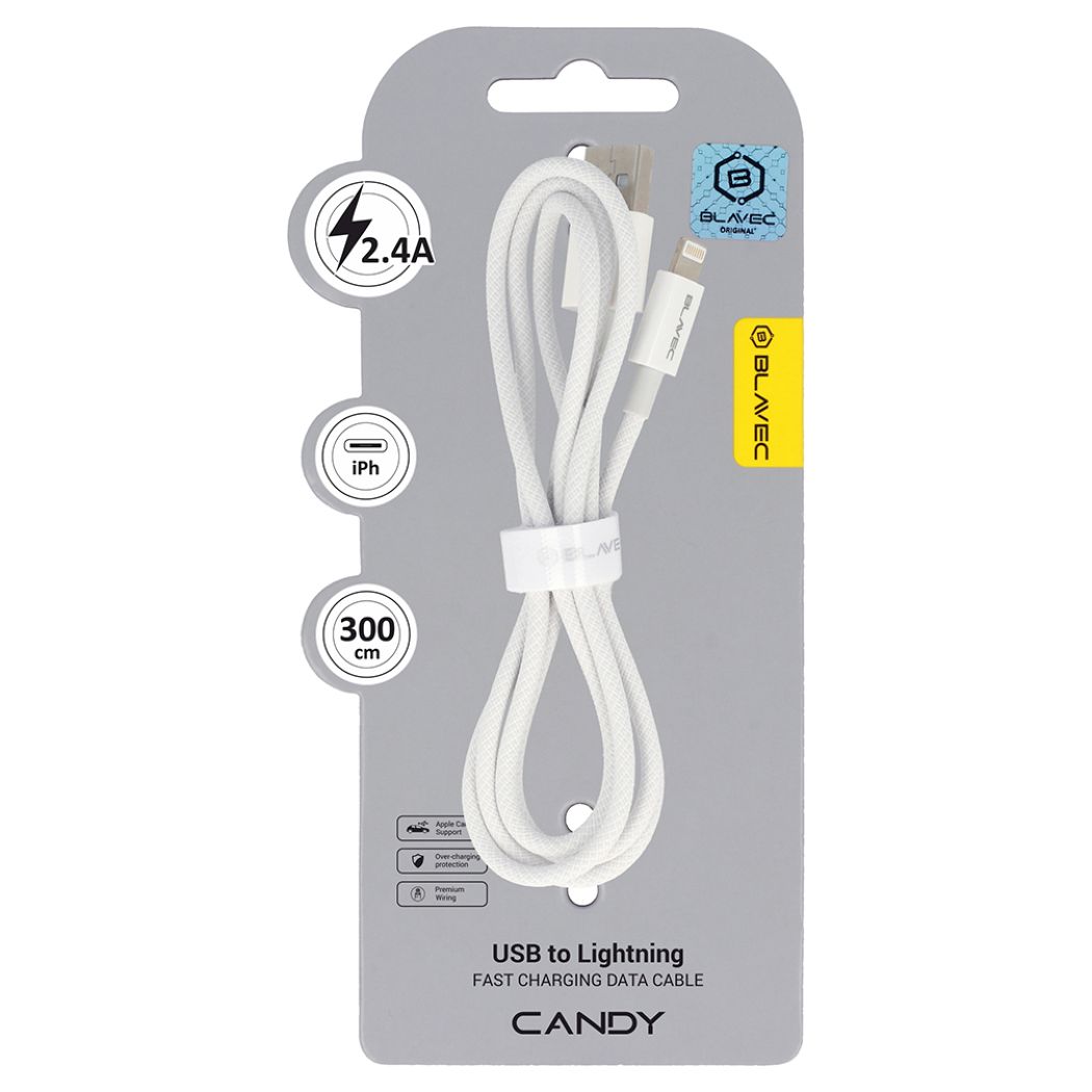 Blavec Candy Braided Fast Charging Data Cable 2,4A (CCA-UL24W30) Καλώδιο Φόρτισης USB to Lightning 3m White