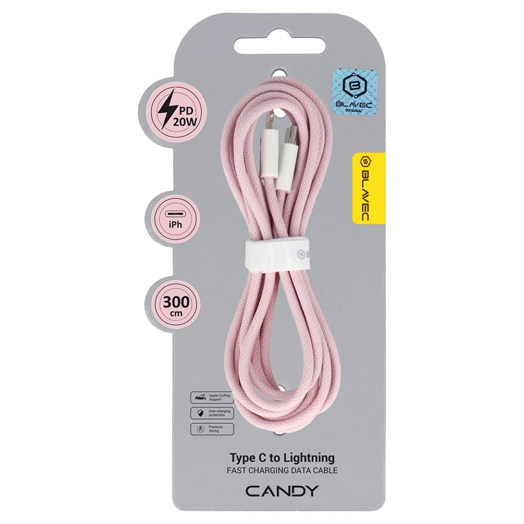 Blavec Candy Braided Fast Charging Data Cable PD 20W 2,4A (CCA-CL24P30) Καλώδιο Φόρτισης Type-C to Lightning 3m Pink