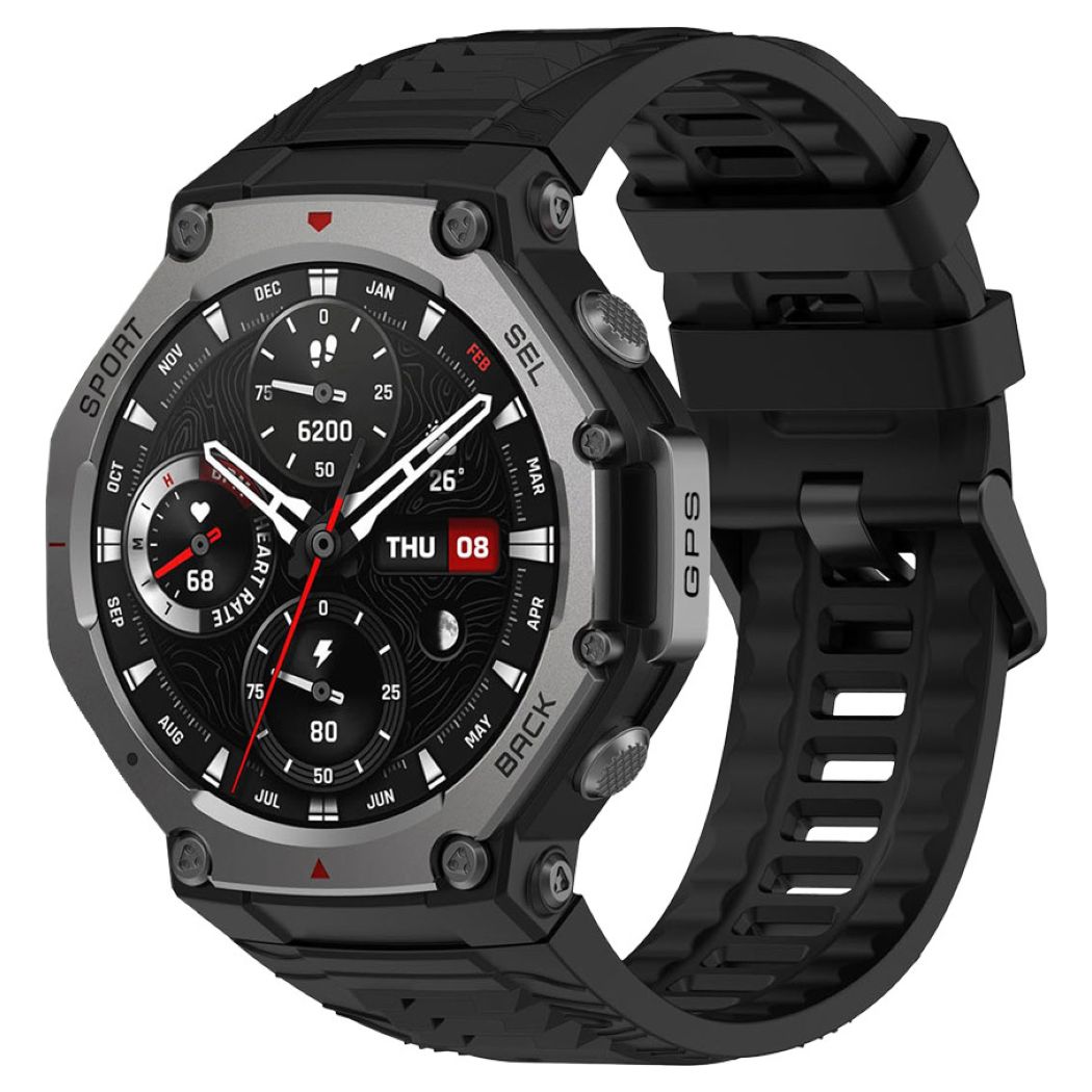 - Λουράκι σιλικόνης 22 mm – Στάνταρ μαύρο-κόκκινο λουράκι σιλικόνης με ελατήρια 22 mm. Γρήγορη αντικατάσταση με άλλα στυλ.
