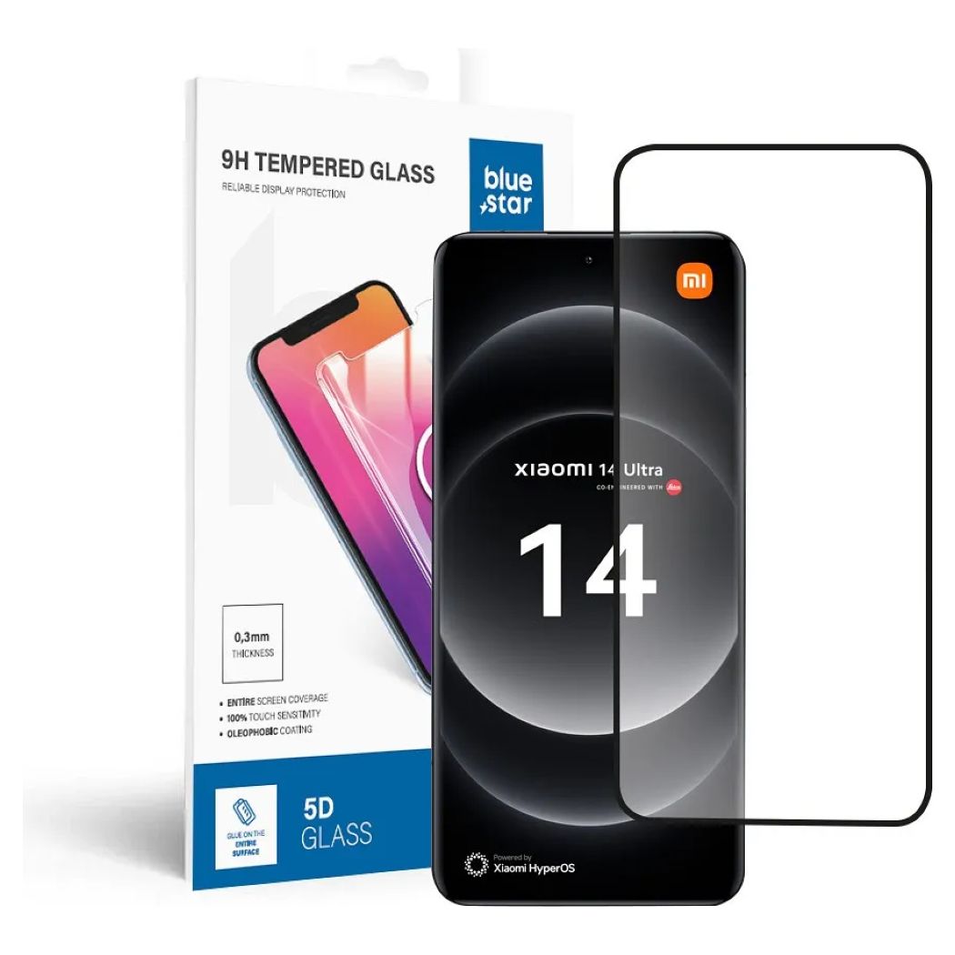 Blue Star Full Face Full Glue Αντιχαρακτικό Γυαλί 9H Tempered Glass για τοXiaomi 14 Ultra . Κατασκευασμένο από γυαλί που έχει υποστεί ειδική θερμική επεξεργασία για να αυξηθεί η αντοχή του σε προσκρούσεις γρατσουνιές και άλλου είδους φθορές.