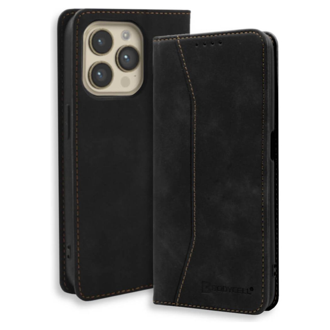 Bodycell PU Leather Book Case Θήκη Πορτοφόλι με Stand - Black (iPhone 14 Pro)