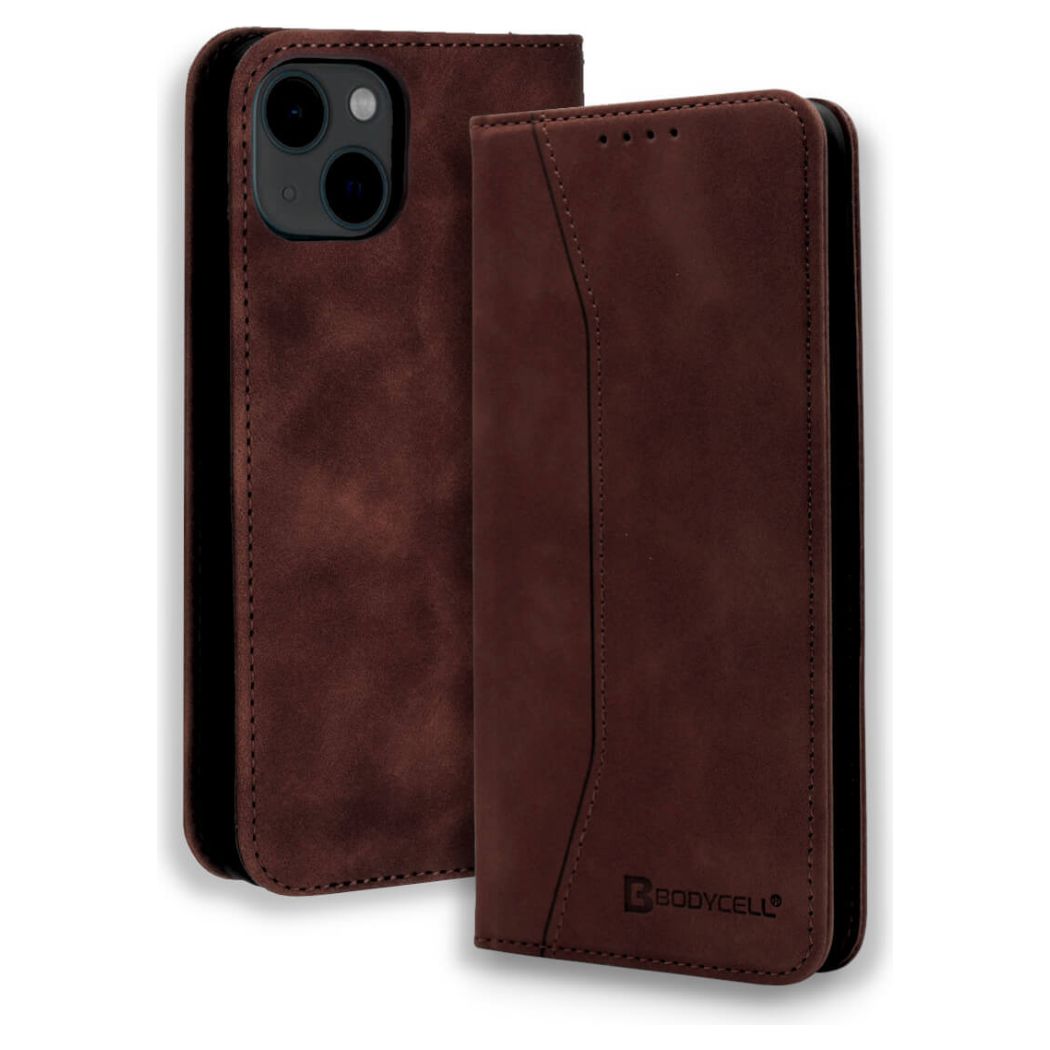 Bodycell PU Leather Book Case Θήκη Πορτοφόλι με Stand - Dark Brown (iPhone 13 Pro)
