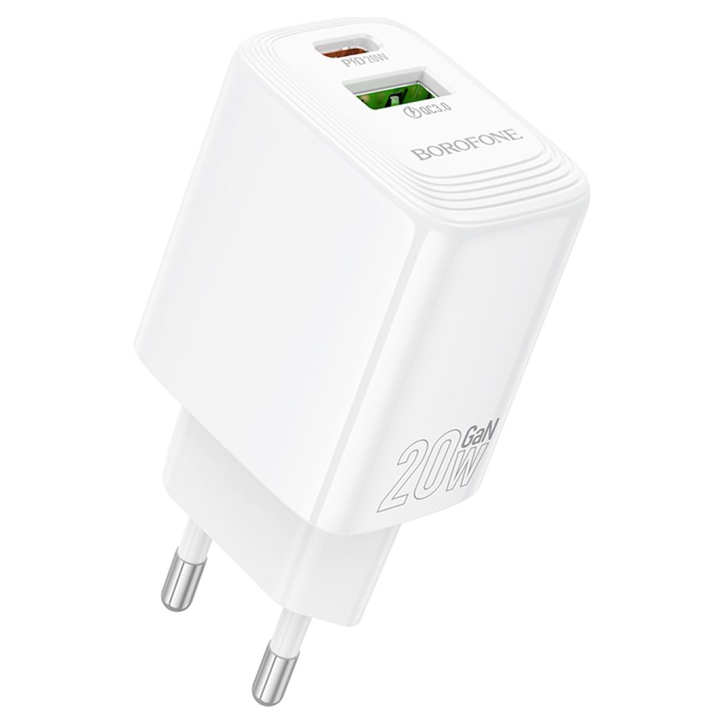 Borofone BN27 Fuente Wall Charger USB / Type-C QC 3.0 PD 20W Αντάπτορας Φόρτισης Τοίχου - White
