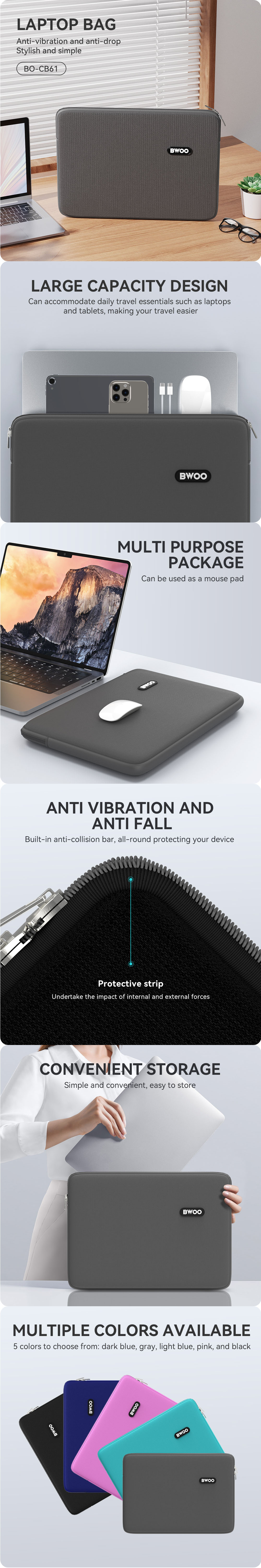 Κατασκευασμένη από υλικά νεοπρενίου υψηλής ποιότητας, η τσάντα BWOO Neoprene Sleeve είναι ελαφριά και αδιάβροχη, επομένως είναι κατάλληλη για καθημερινές μετακινήσεις χωρίς φθορά.