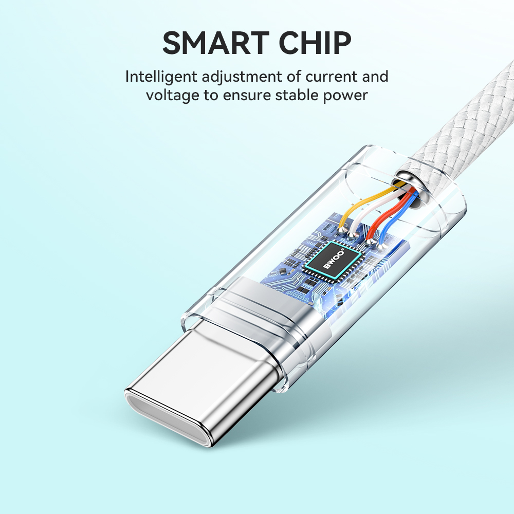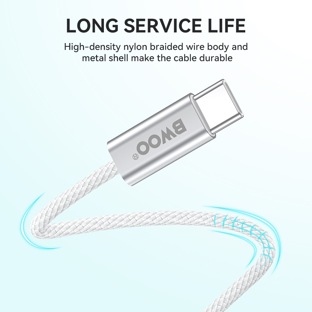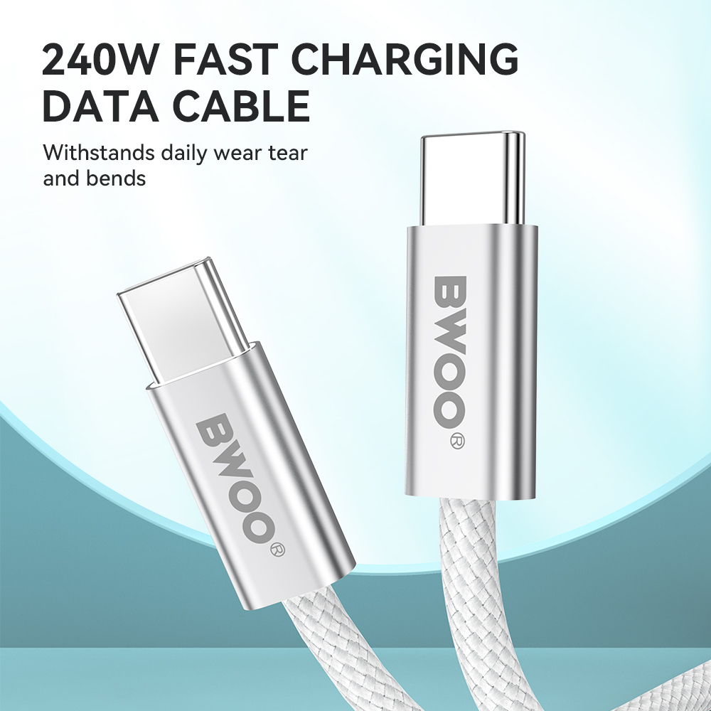 BWOO BO-X317C-C Fast Charging Data Braided Cable 240W PD Καλώδιο Φόρτισης Type-C to Type-C 1m White - MT82769