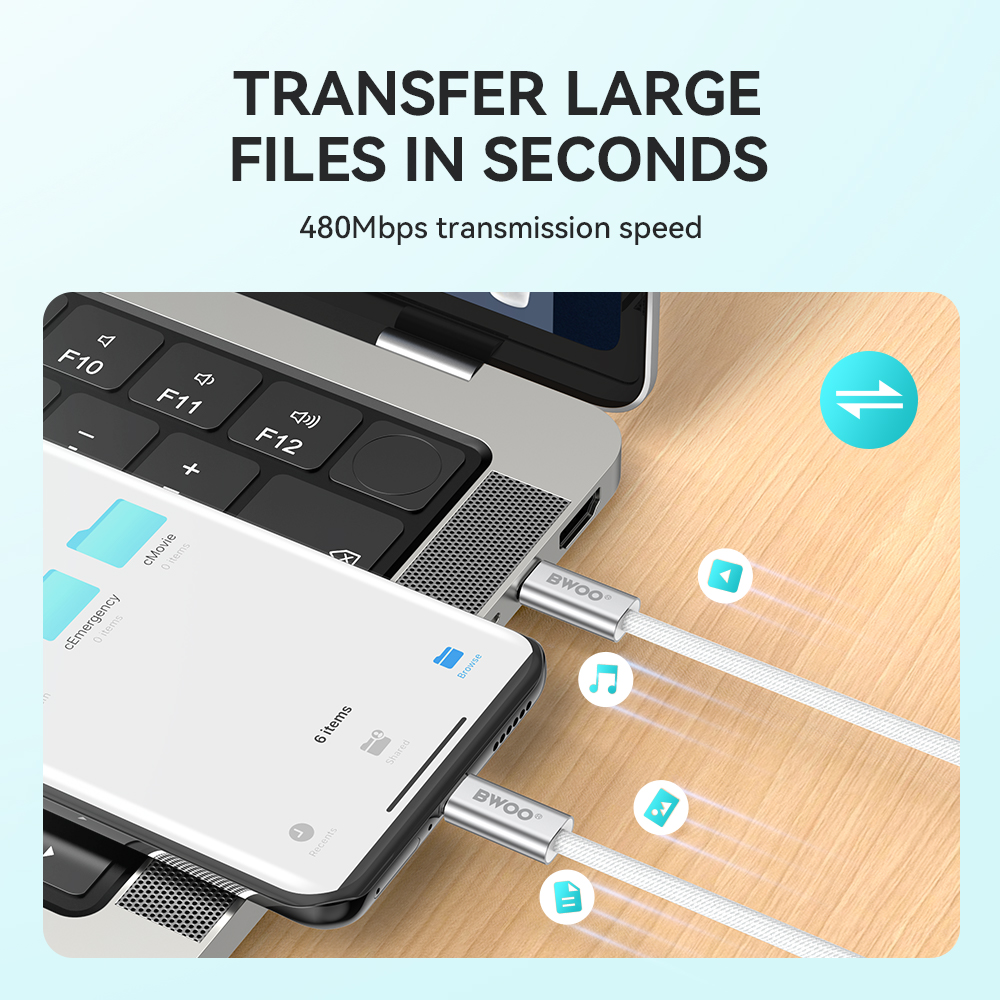 Η μεταφορά δεδομένων στα 480 Mbps επιτρέπει τον ομαλό συγχρονισμό αρχείων 4K, μεγάλων δεδομένων ή αντιγράφων ασφαλείας – ακόμα και κατά την ταυτόχρονη φόρτιση – ιδανικό για δημιουργούς και χρήστες προηγμένης τεχνολογίας.