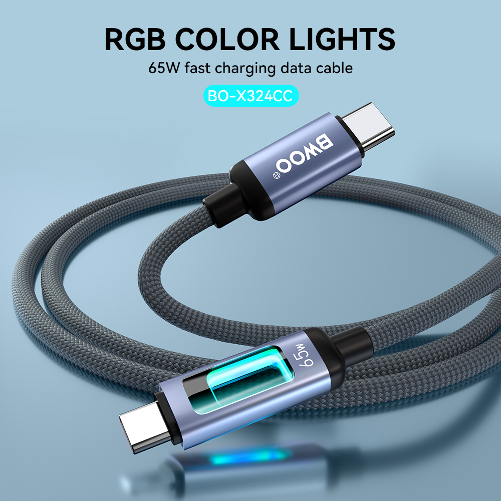 BWOO BO-X324C-C Fast Charging Data Cable with Light Display 60W PD Καλώδιο Φόρτισης Type-C to Type-C 1m Black - MT82765