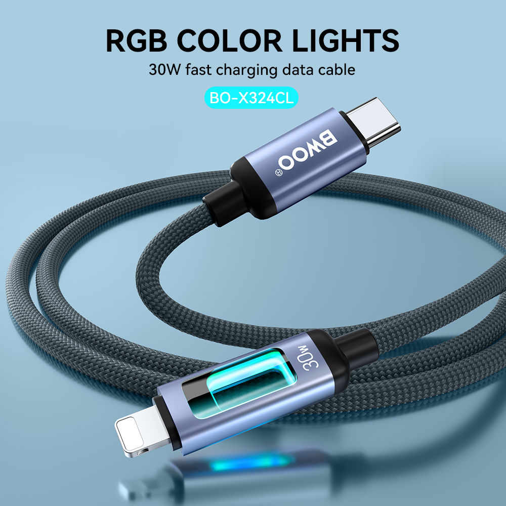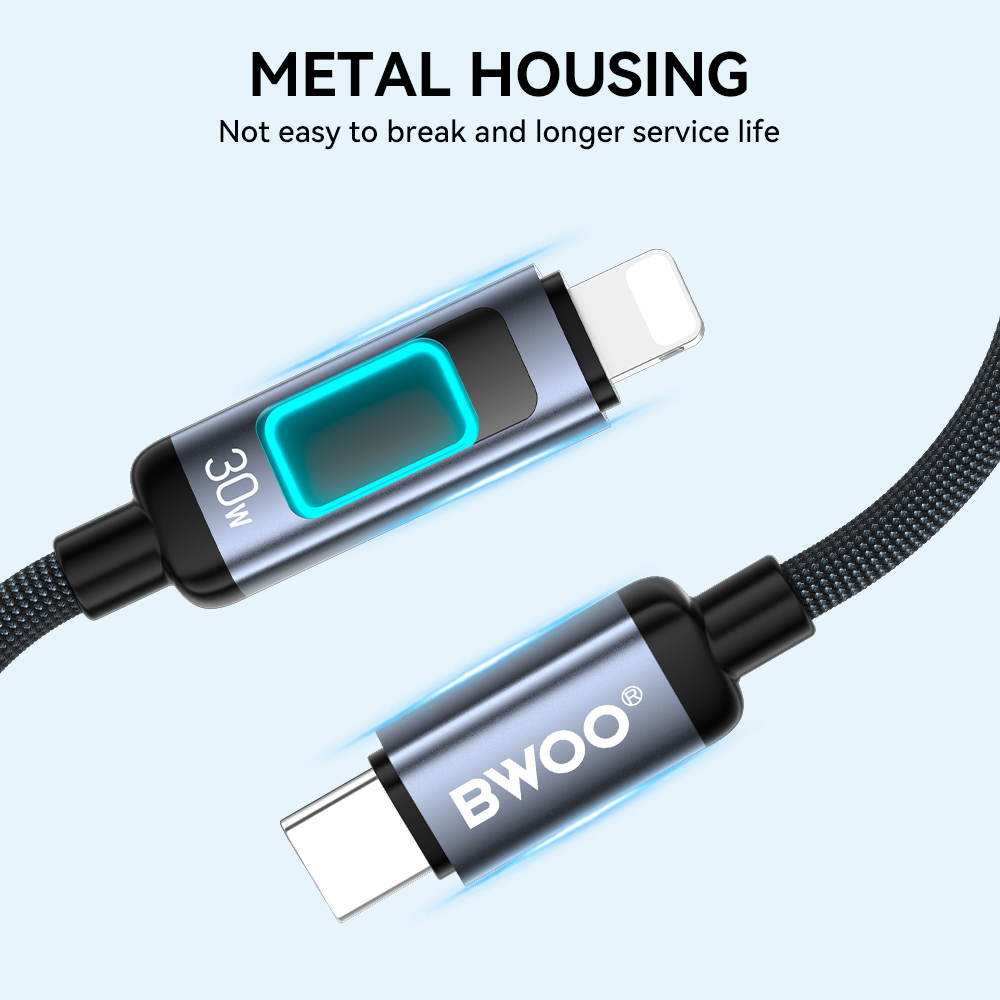 BWOO BO-X324C-L Fast Charging Data Cable with Light Display 27W PD Καλώδιο Φόρτισης Type-C to Lightning 1m Black - MT82766