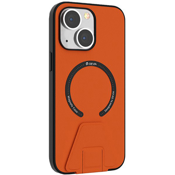 Devia Randy MagSafe PU Leather Kickstand Case Σκληρή Θήκη με TPU Bumper Orange (iPhone 14 Plus)