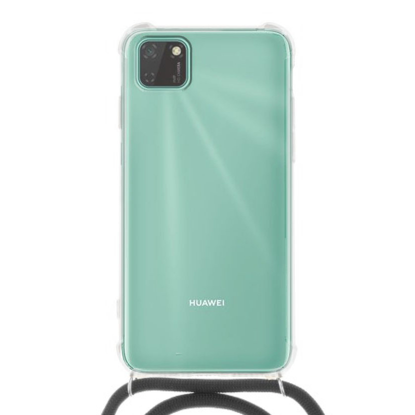 Forcell Cord Clear Silicone Case Διάφανη Θήκη με Λουράκι - Black (Huawei Y5P / Honor 9s)