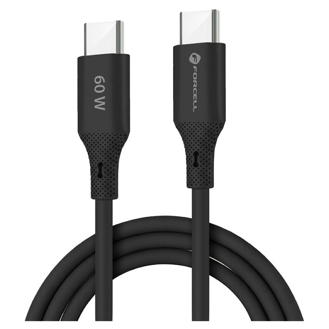 Forcell F-ENERGY C344 Silicone 60W Καλώδιο Φόρτισης QC4.0 PD 3A Type C σε Type C 1m - Black - MT82679