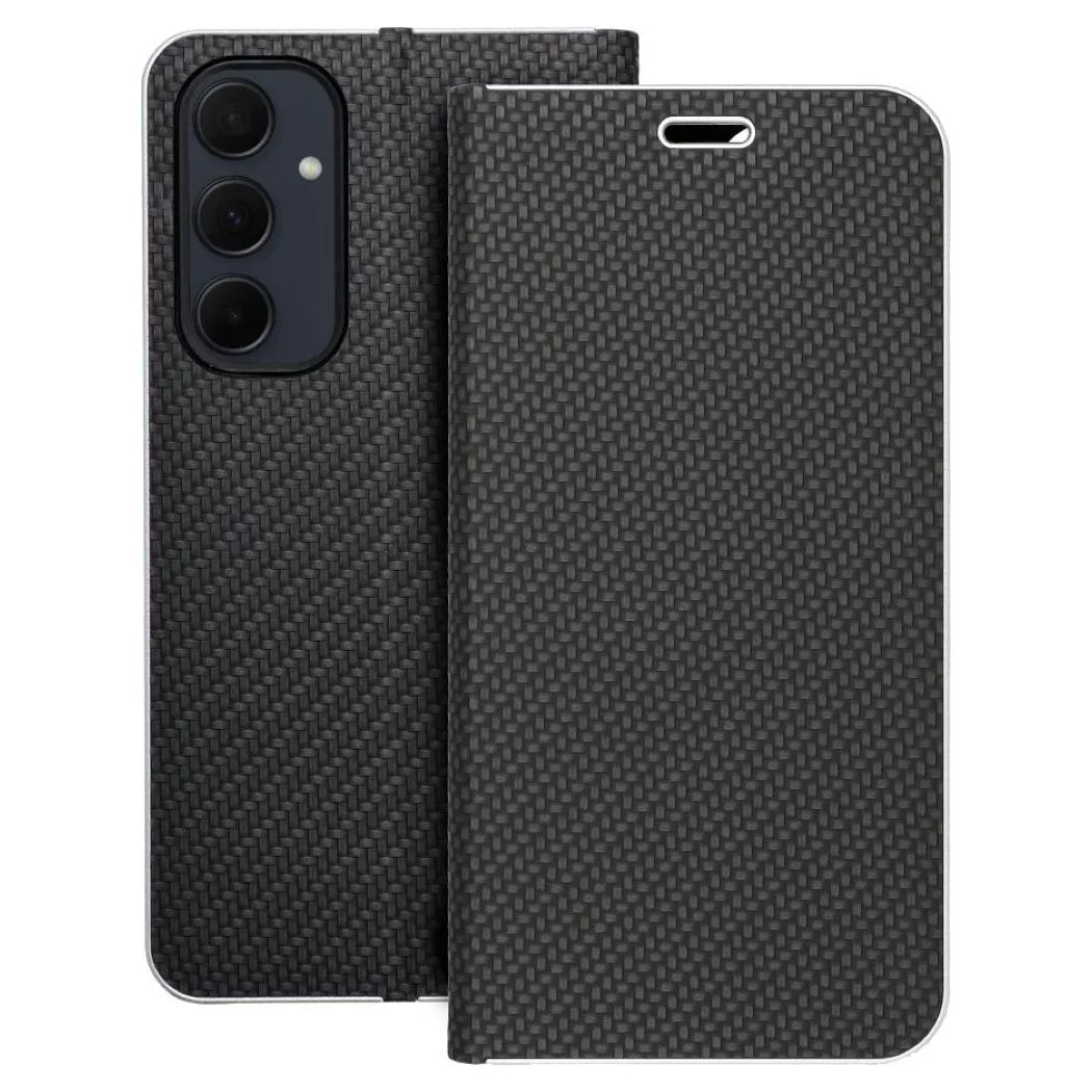 Forcell Luna Carbon Wallet Case Θήκη Πορτοφόλι με Δυνατότητα Stand - Black (Samsung Galaxy A35 5G) - MT75110