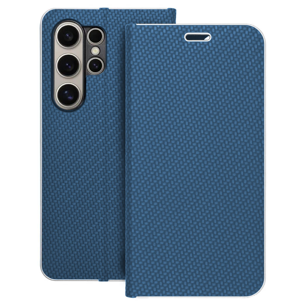 Forcell Luna Carbon Wallet Case Θήκη Πορτοφόλι με Δυνατότητα Stand - Blue (Samsung Galaxy S24 Ultra) - MT75114