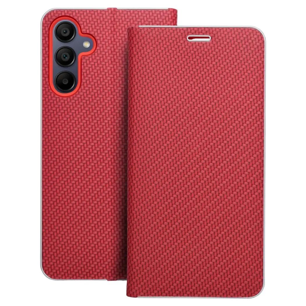 Forcell Luna Carbon Wallet Case Θήκη Πορτοφόλι με Δυνατότητα Stand - Red (Samsung Galaxy A15 4G / 5G) - MT75107