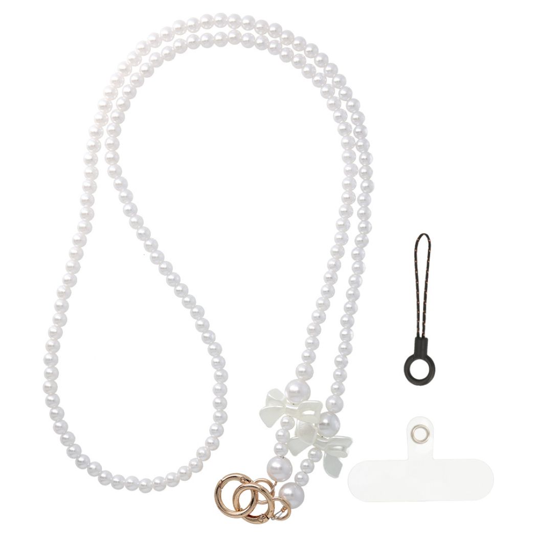 Lanyard Phone Pendant GSD-25 Λουράκι για Smartphone / Κλειδιά - White Pearls White Ribbons
