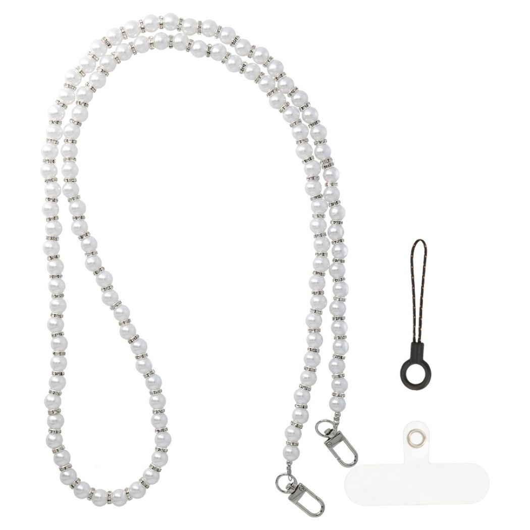 Lanyard Phone Pendant GSD-29 Λουράκι για Smartphone / Κλειδιά - Silver White Pearls