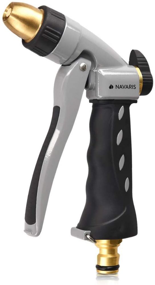 Με το πιστόλι νερού υψηλής πίεσης από τη Navaris μπορείτε να ποτίζετε τα τα λουλούδια ή το γκαζόν σας ομοιόμορφα με νερό. Η χειρολαβή είναι κατασκευασμένη από 100% ανθεκτικό μέταλλο (ορείχαλκος, χάλυβας).
