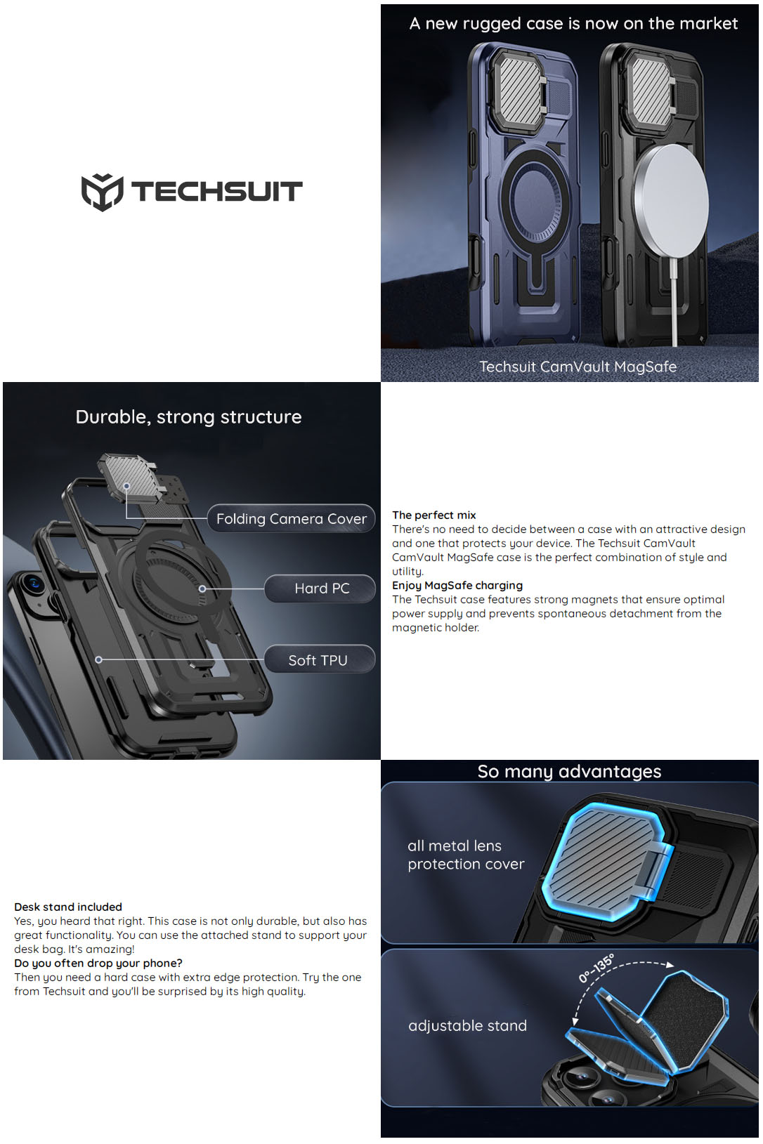 Δεν χρειάζεται να αποφασίσετε ανάμεσα σε μια θήκη με ελκυστικό σχεδιασμό και σε μια που προστατεύει τη συσκευή σας. Η θήκη Techsuit CamVault CamVault MagSafe είναι ο τέλειος συνδυασμός στυλ και πρακτικότητας. Η θήκη Techsuit διαθέτει ισχυρούς μαγνήτες που εξασφαλίζουν βέλτιστη τροφοδοσία και αποτρέπουν την αυθόρμητη αποκόλληση από τη μαγνητική θήκη.