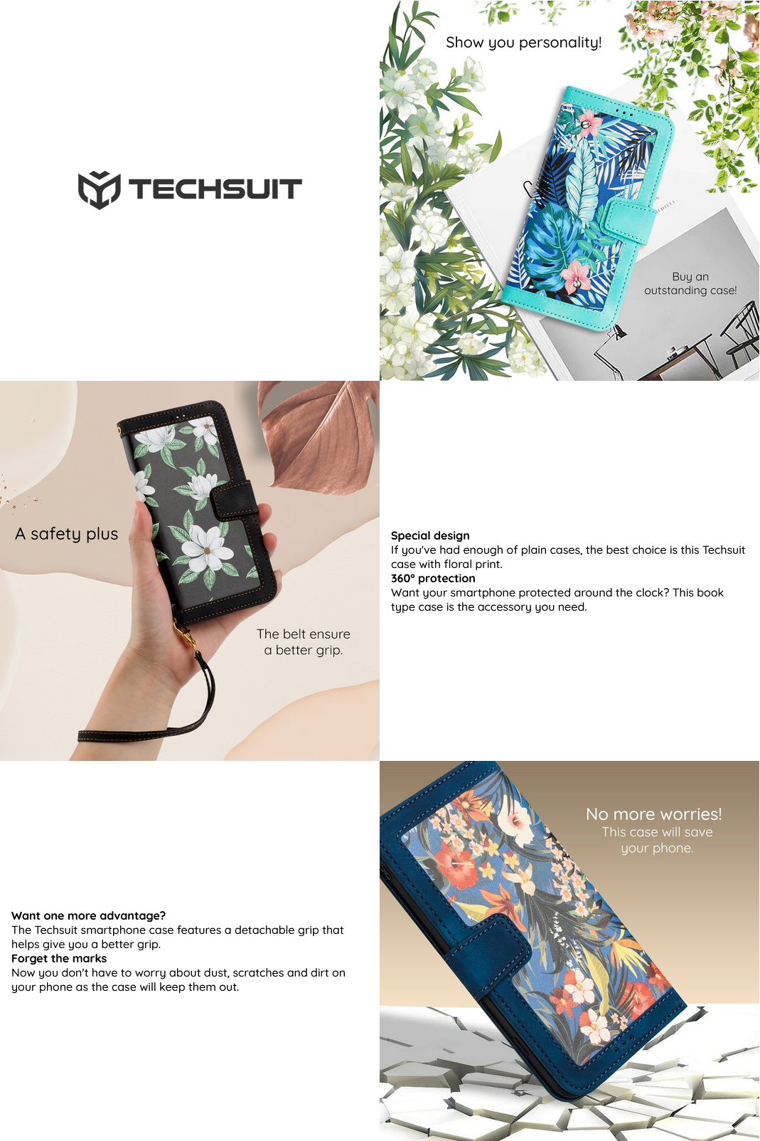 Η θήκη smartphone Techsuit διαθέτει αποσπώμενο λουράκι καρπού που σας βοηθά να έχετε καλύτερο κράτημα.
