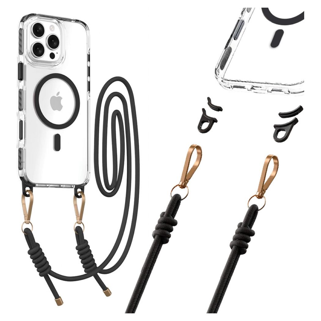 Tel Protect Strap Clear MagSafe Case with Neck Cord Lanyard - Black (iPhone 15 Pro)