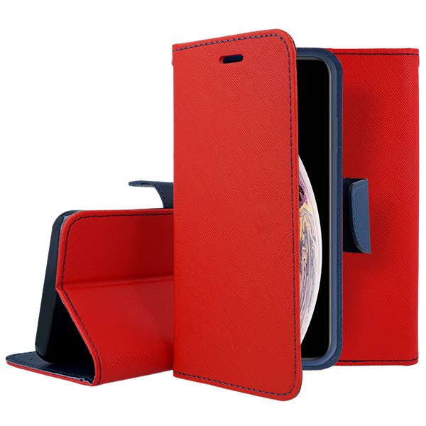 Tel1 Fancy Diary Θήκη Πορτοφόλι με δυνατότητα Stand Red / Navy (iPhone X / Xs) - MT31361