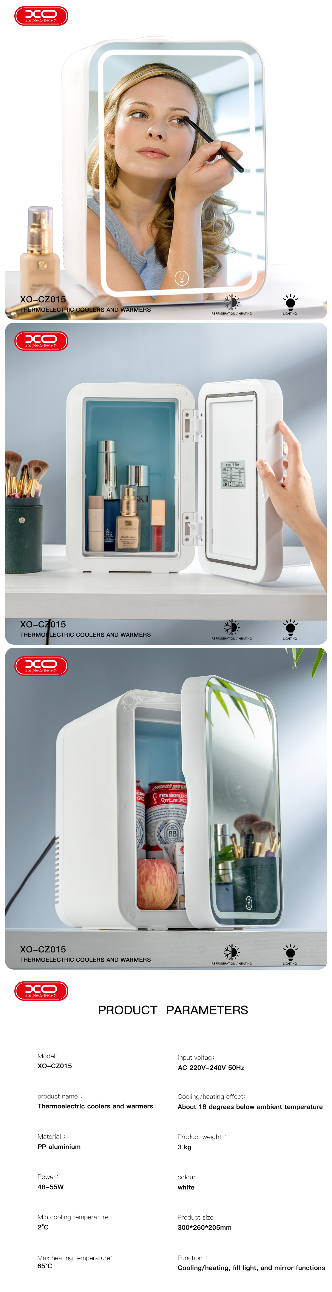 XO CZ015 Mini Car Refrigerator with Mirror LED Ηλεκτρικό Φορητό Ψυγείο με Καθρέπτη - White - MT80316